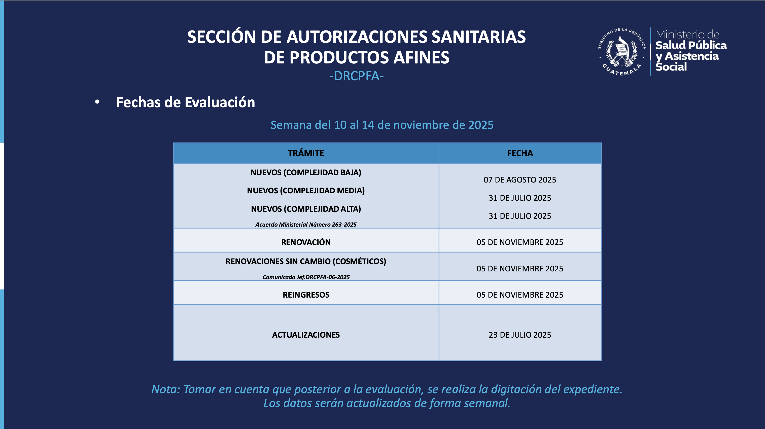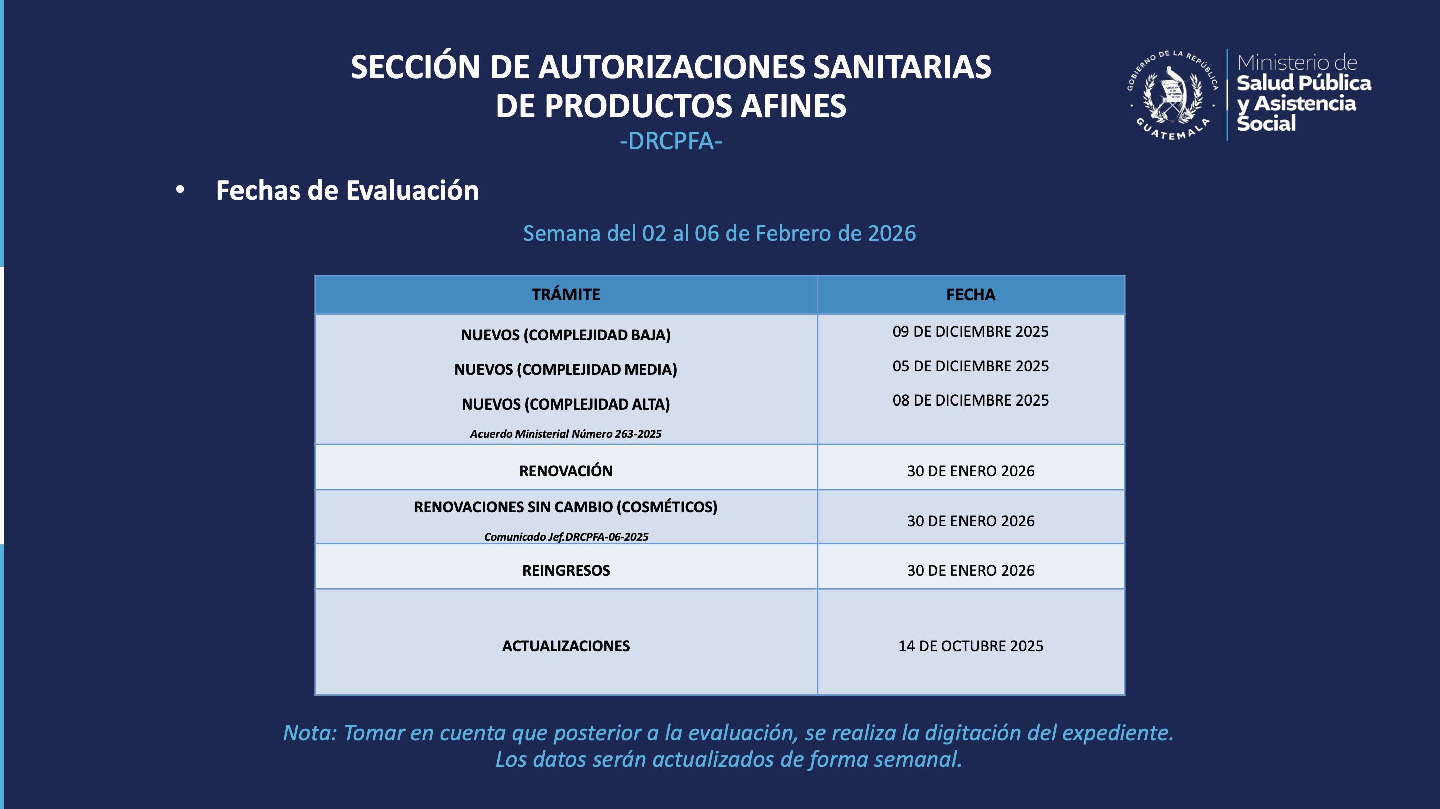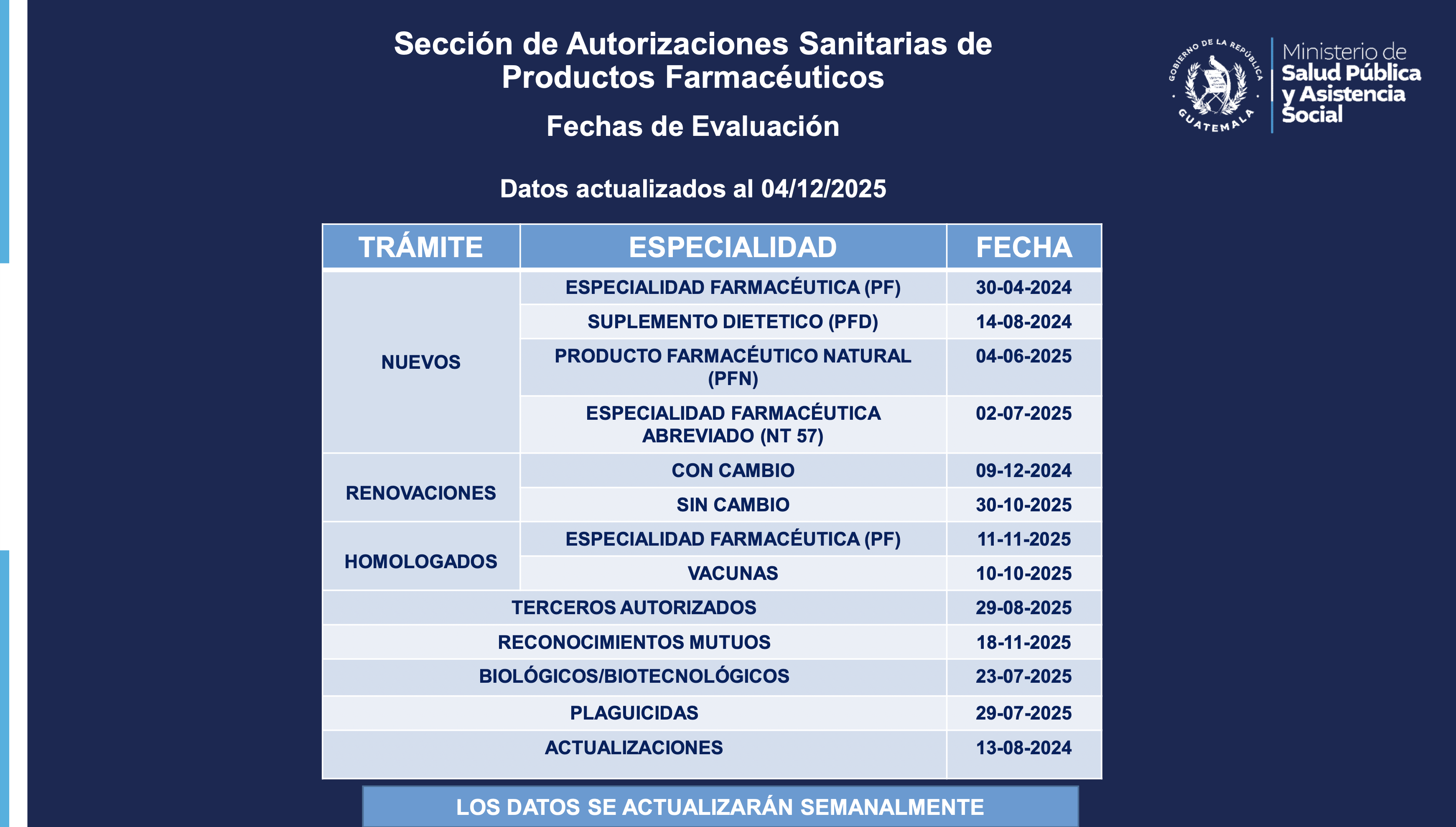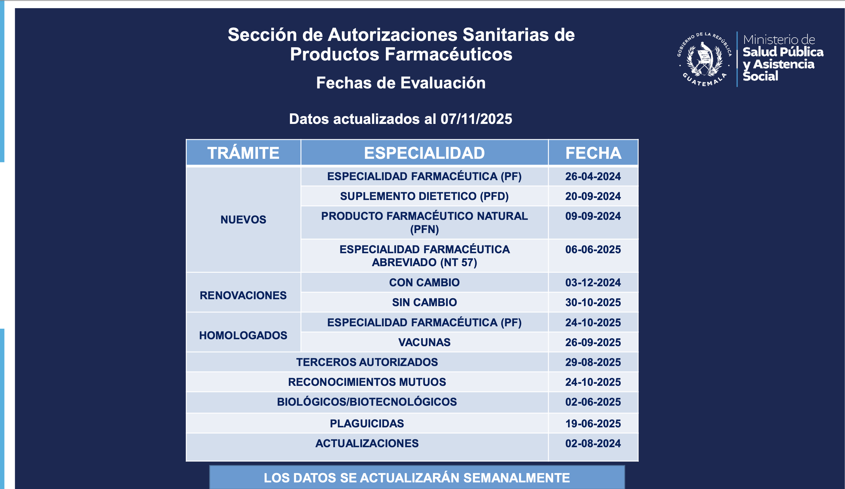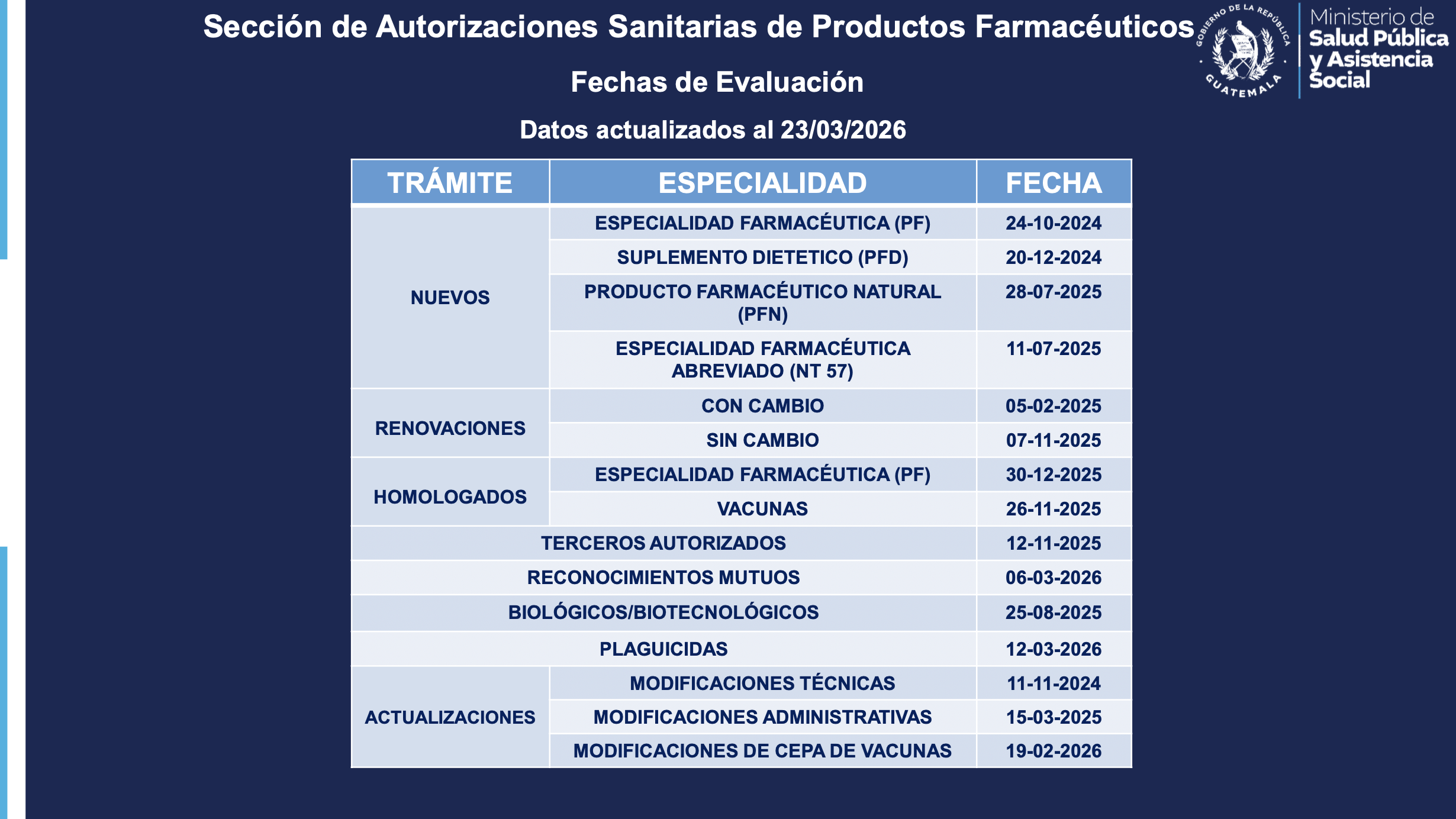 Status trámites Productos Farmacéuticos